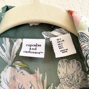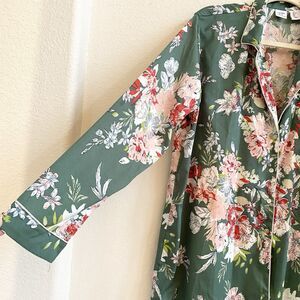 Cupcakes & Cashmere Women's Green Floral Button Down Pajama Night Shirt Sz L