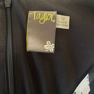 Taylor Black and White Floral Long Sleeve Dress
