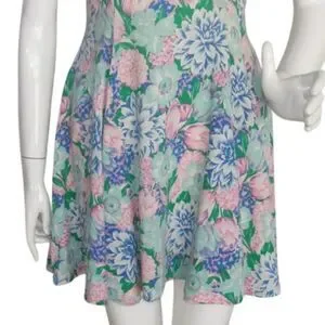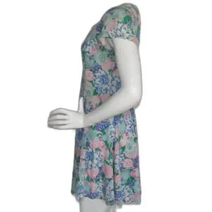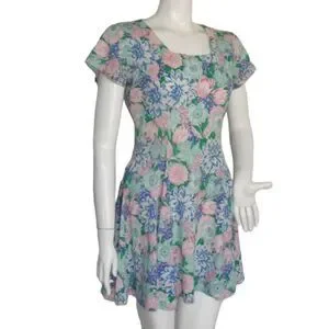 VINTAGE Skater MIni Dress, S, Multicolor Floral, Short sleeves, Square neck