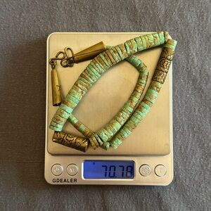 RARE_VINTAGE_Santo Domingo Tony Aguilar Sr. Brass & NATURAL Turquoise Necklace