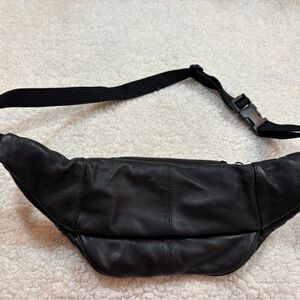 Classic black leather belt bag. Multiple zippered compartments. Ideal for secure storage. 4 zippered compartments | used Excellent condition