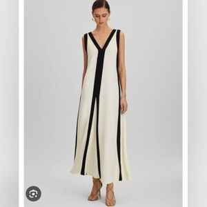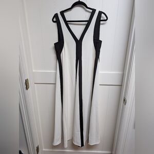 Elevate your style with this chic sleeveless maxi dress. Featuring a sophisticated black and cream design, it's perfect for any occasion.