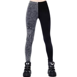 Killstar Witch Leggings ✦ Two-Faced Graphic Stretch ✦ Black & Grey Alt-Core NWT