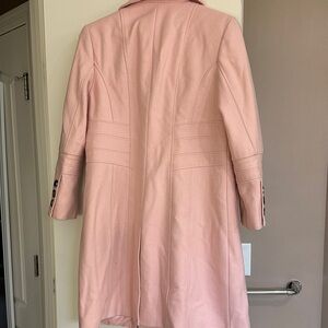 Elegant pink trench coat with button details. Perfect for a polished look.