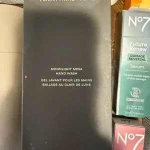 A diverse collection of beauty and skincare products. Includes creams, serums, No7, TwentyNine Palms, nail polish lamp, masks, gloves, twillees, and more. Perfect for your skincare routine or to add as appreciation gifts.