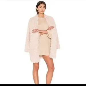 Anthropologie Bishop + Young Teddy Coat Long Fuzzy Blush