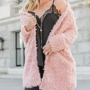Light enough for early fall temps but heavy enough to take the edge of those cooler days and nights. This beautiful blush color is versatile and feminine. It can be paired with jeans and sneakers for an edgy casual look or with trousers and heels for a night out on the town.