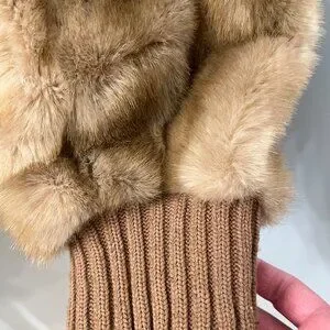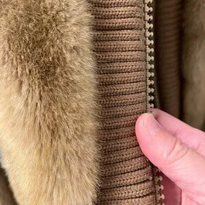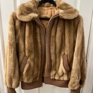 Retro vintage 70s beige faux mink fur bomber jacket.