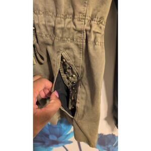 faux leather moto jacket, green motorcycle jacket, studded sleeve jacket, women’s large jacket, edgy faux leather jacket, statement moto jacket