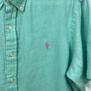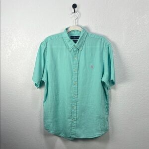 Polo by Ralph Lauren Men's Light Green Button Down Shirt Linen Short Sleeve Sz L