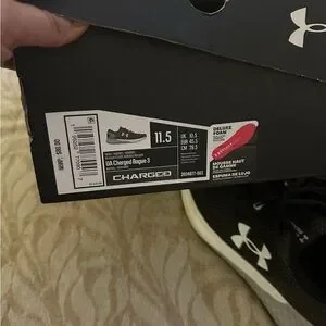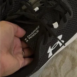 Men’s Under Armour charged rogue 3 size 11.5 black with white and gray accents. Used in good condition.