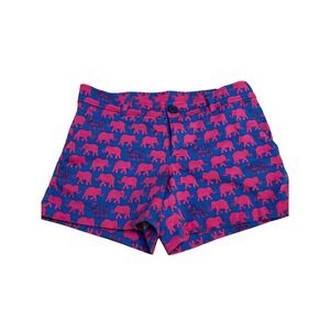 Women's Blue Pink Elephant Print Shorts Casual Summer Beach Vacation Size M