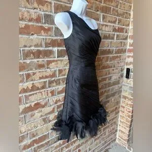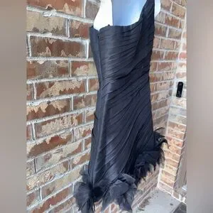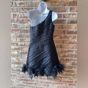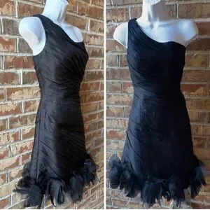 Style: One-shoulder ruched pleated cocktail dress with rosette/feather hem