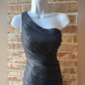 Theia one-shoulder ruched silk-blend mini dress with a rosette hem size 8