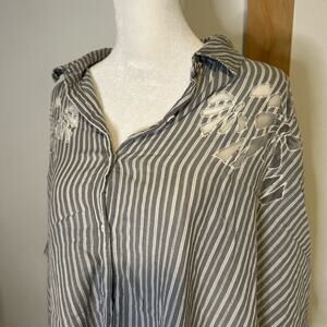 Maeve Anthropologie gray & white striped oversize button down shirt size XS/S