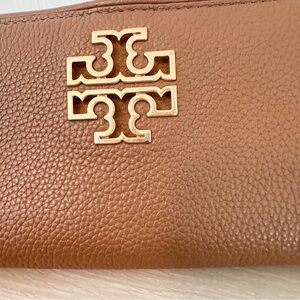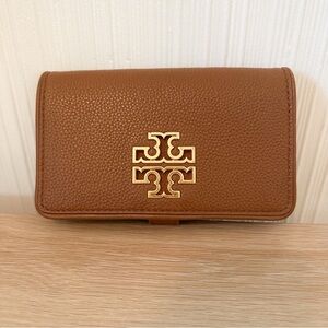 Tory Burch Britten Pebble Leather Smartphone Wristlet/ Wallet/ Bark/Tan