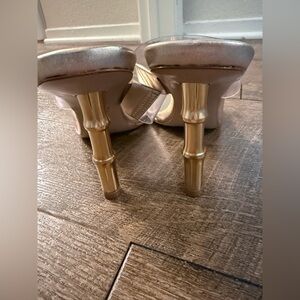 Schutz Clear Double Strap Bamboo Heel Sandals, Metallic Gold, 8.5, Worn Once!