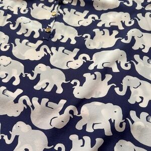 Lilly Pulitzer Elsa Elephant Navy and Cream Patterned Top