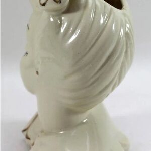 Keywords: vintage vase, porcelain vase, gold trim, 1940s style, decorative vase, planter, lady head vase, mid-century, vintage glamour, home decor, beige vase, gold accents, collectible vase, original vintage, pre-owned vase.