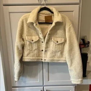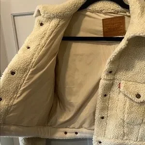 Levi's sherpa jacket in cream. Features soft texture and classic design.