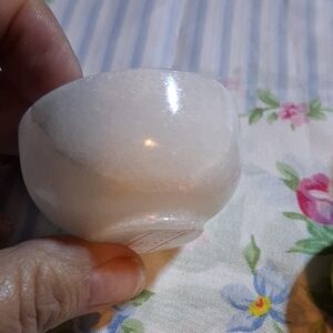 Beautiful set of 5 small jade stone bowls. Includes shades of green and white. Perfect for decor, approximately 2 inches each. ( small crack in white bowl, see pictures)