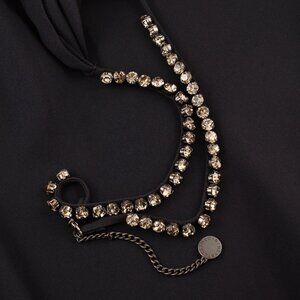 Embodying a Stella McCartney sexiness, this dress begins with two thin, lead-free crystal embellished halterneck straps that give way to a deep plunging neckline. Continuing into a draped, figure-caressing silhouette that ends at a floor length, it’s best worn with coordinating bags and shoes from the collection.