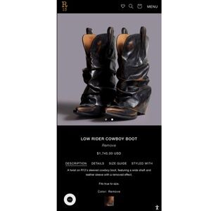 Original R-13 Low Rider Cowboy Boot size, soft black distressed leather , 1 1/2" heel, some wear on soles and heels as shown but still good condition, original price is $1,745.00
