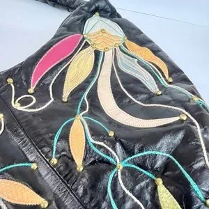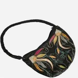 Vintage Hobo Floral Embroidered Studded Accent Patchwork Shoulder Bag