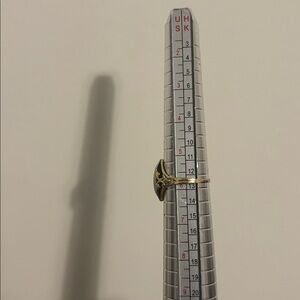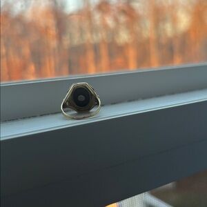 Stylish deco style ring with 10k white and yellow gold surrounding small diamond in the center. Size 5 3/4. EUC!