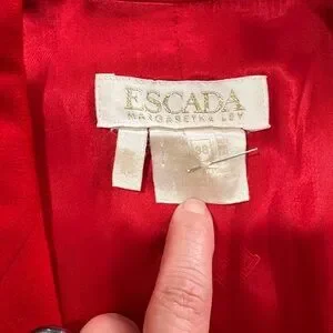 Experience true luxury with this stunning Escada Margaretha Ley red blazer, crafted in pure Italian cashmere by Piacenza (est. 1733). Featuring iconic gold embossed buttons, sharp tailored lines, and a silky monogram satin lining, this piece blends timeless elegance with high-end craftsmanship. A rare collectorβs treasure for refined wardrobes. β€οΈβπ₯