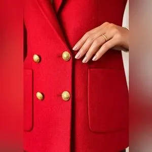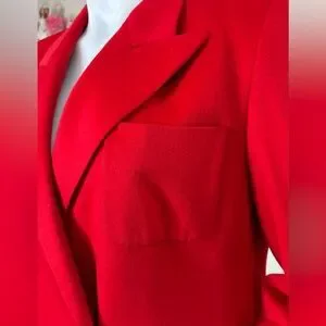 escada blazer, margaretha ley, vintage escada, red designer blazer, cashmere jacket, luxury italian tailoring, double breasted blazer, gold button blazer, statement red blazer, power blazer, high-end vintage fashion.