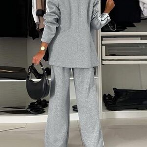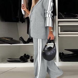 Elevate your style with these elegant gray track pants featuring chic white accents. Perfect for a modern and sophisticated look.