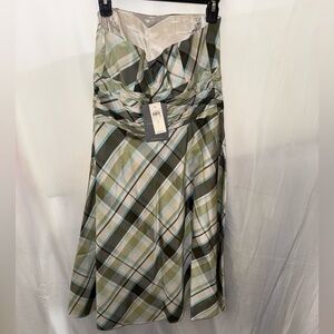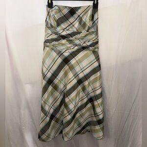 Y2K Ann Taylor Strapless Dress in Green and Cream Plaid