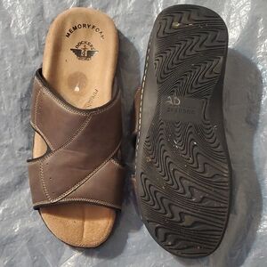 Stylish dark brown sandals with memory foam. Perfect for casual outings.