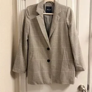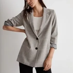 Madewell The Dorset Blazer in Galloway Plaid Grey and White size XS