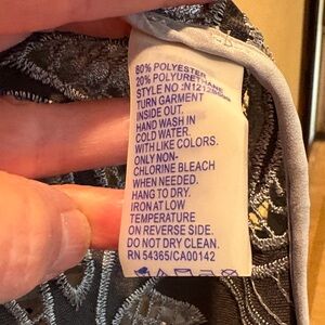 Elegant open cardigan with intricate paisley lace design. Features a blend of silver and black colors.