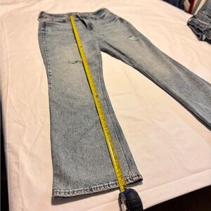 Fit and Rise: They feature a high-rise contoured waistband and are fitted through the hip and thigh with a flared leg.