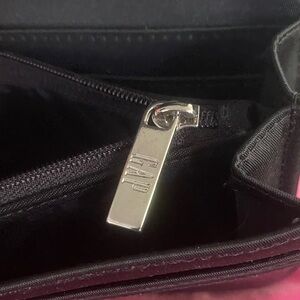 This sleek black clutch wallet is perfect for any occasion, and in brand new condition. It has more slots, cubbies, and zip pouches to hold your cards, ID, the cash you don’t have, and the coins that are abundant.