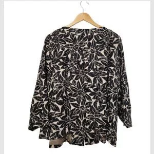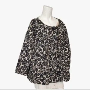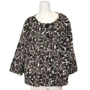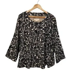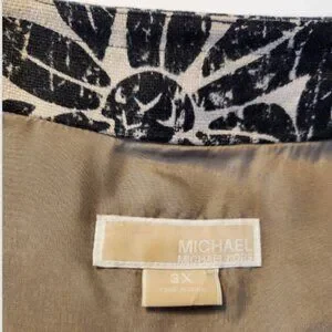 MICHAEL Michael Kors Linen Black Beige Floral 2 button/snap Jacket Lined 3/4 Sleeve Women's Plus Size 3X. Excellent nearly new pre owned condition. No flaws. See pics. Slit hand pockets.