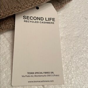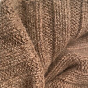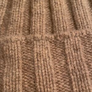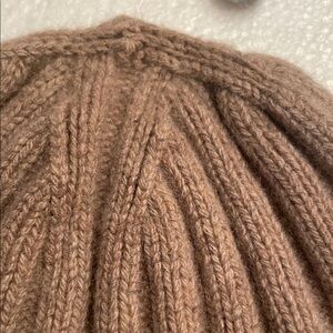 Stylish tan ribbed knit beanie; tesma recycled cashmere made in Italy Perfect for cold weather.