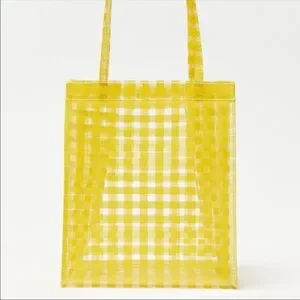 $3/20 Urban Outfitters Yellow Hello Gingham Plaid Printed Clear Mini Tote Bag