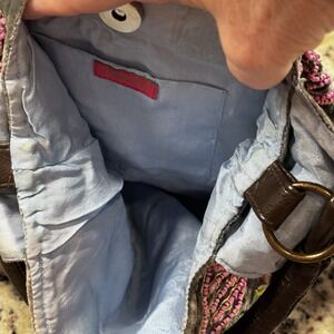 Chan Luu Velvet Silk Embroidered Beaded Bag W/ Leather Handle, Boho Luxurious