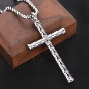 Silver Christian Rope Nail Cross Necklace Religious Pendant Faith Jewelry Gift