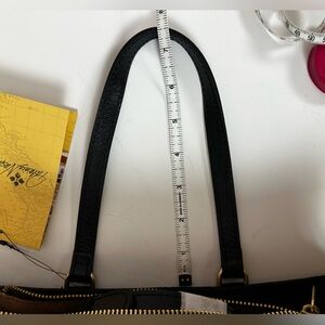 Cream and black color mix, leather straps, and exterior along with patterned knit material; four gold tone feet in excellent condition. Comes with adjustable Crossbody strap.