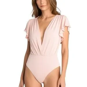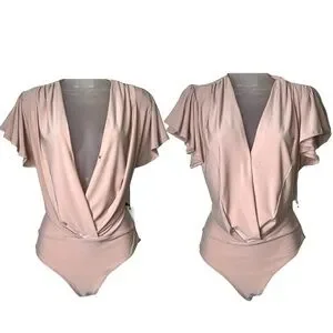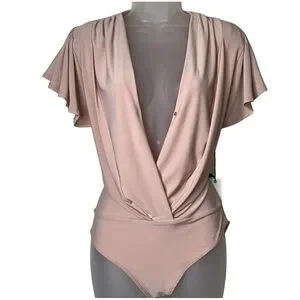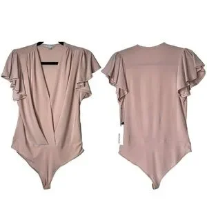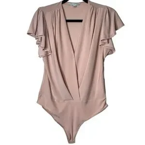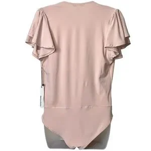 Haute Monde Ruffle Flutter Sleeve Mock Wrap Bodysuit Top Blush Pink Medium Sexy