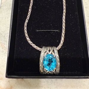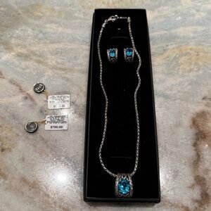PRE-OWNED in Excellent Condition. EFFY Lagoon Sterling Silver & Blue Topaz Necklace and Earrings Set. Gorgeous set of necklace and earrings worn once as a bridesmaid gift for a wedding. Please see photos for style, color and condition details. Items will be shipped in black "Macy's Fine Jewelry" box as shown, along with the Effy price tags also shown. SMOKE AND PET FREE HOME. Please contact me with any questions.