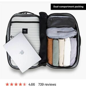 Pakt 45L travel backpack in black. Perfect to traveling or commuting. New with tags.