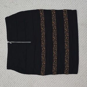 Black midi skirt with cheetah print stripes by Heart Crush. It's super stretchy and has a zipper on the back. No rips or stains. The size is a Juniors 9. Additional measurements are available upon request.