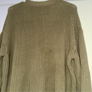 Flaws include what look like oil stains throughout the sweater, and a reverse pull in the front (please see all pictures closely)