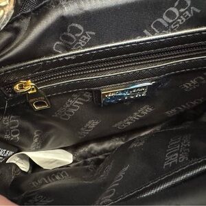NWT Chic Versace Jean Couture shoulder tote bag. Black body with striking gold chain details. Ideal for stylish dressy casual, business or casual outings.